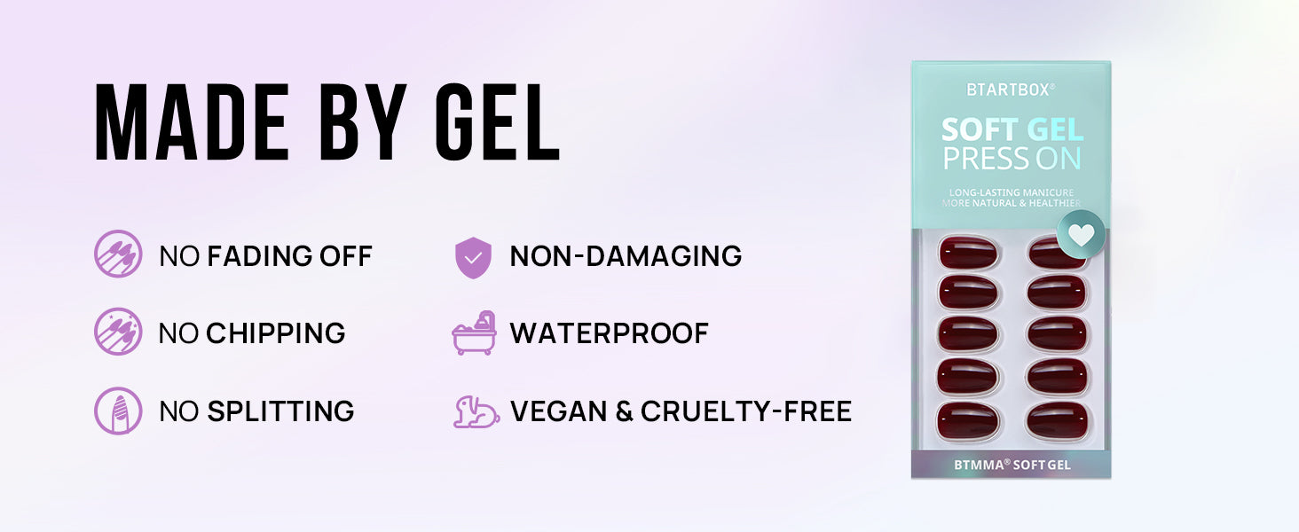 They are made with high-quality materials that are comfortable and fully customizable to your nail, using included tools. Attached with non-toxic and non-damaging glue and jelly tabs.